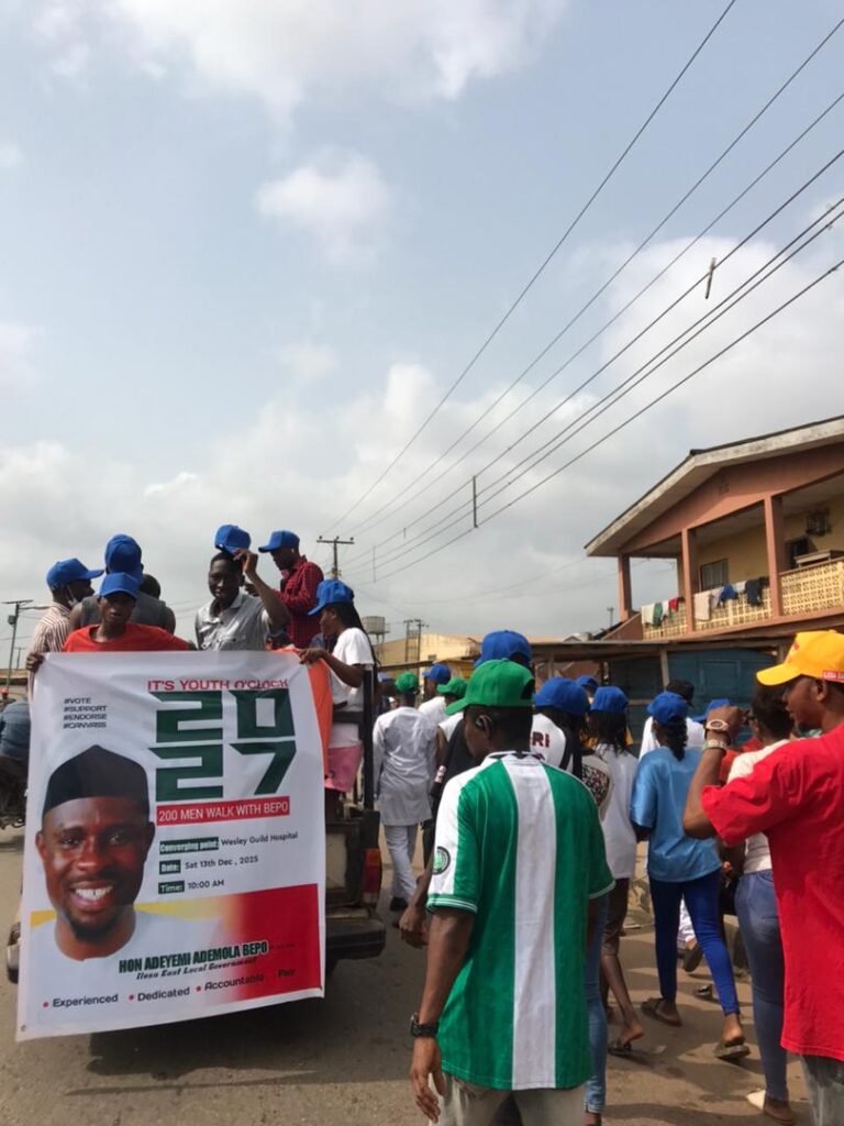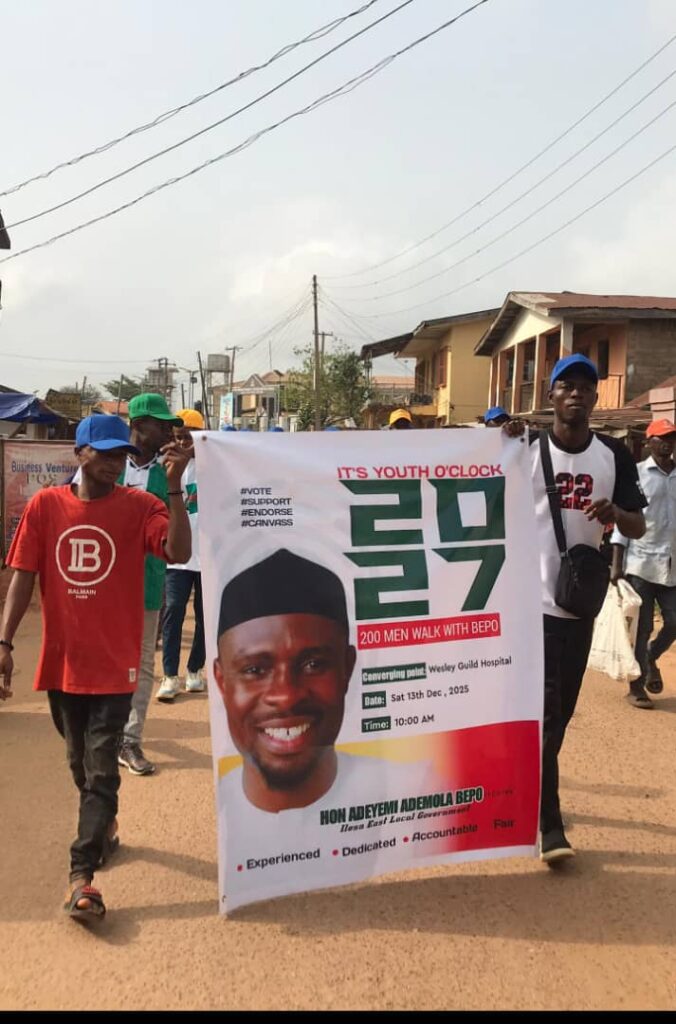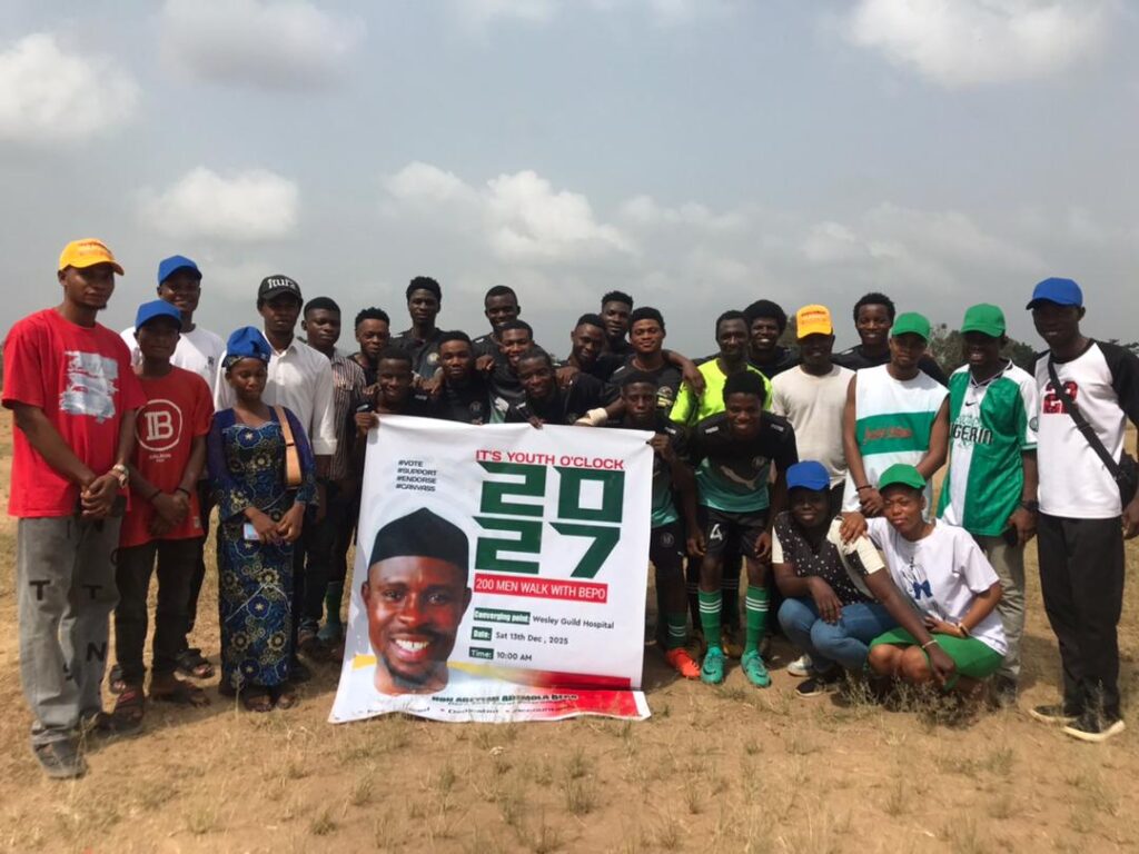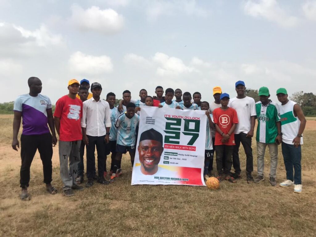 On Saturday, 13th of December, 2025 Youths from various areas of Ilesa East Local Government converged at Wesley Guild hospital gate, Ilesa for 200 Men walk with Honourable BEPO, the Youths started by paying homage to the Celebrant’s parents at their Isona residence before moving round some areas of Ilesa East Local Government and ended at C&S High School, Iyemogun road, Ilesa for the final match of the football competition organized in honour of the Celebrant.